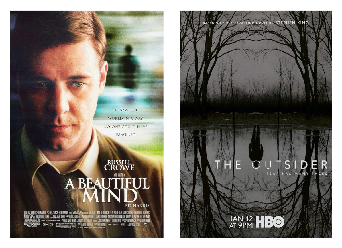 Paranoid psychosis gets the Oscar-winning biography treatment in A Beautiful Mind (2001). Russell Crowe’s John Nash is a math prodigy whose mind is also generating people who do not exist and conspiracies that are not real. Jennifer Connelly won Best Supporting Actress as his wife, holding onto him even when reality does not. The film won Best Picture, Best Director for Ron Howard, and Best Adapted Screenplay, making it a prestige machine. The Outsider on HBO merges psychosis with supernatural horror until you cannot tell where one ends and the other begins.