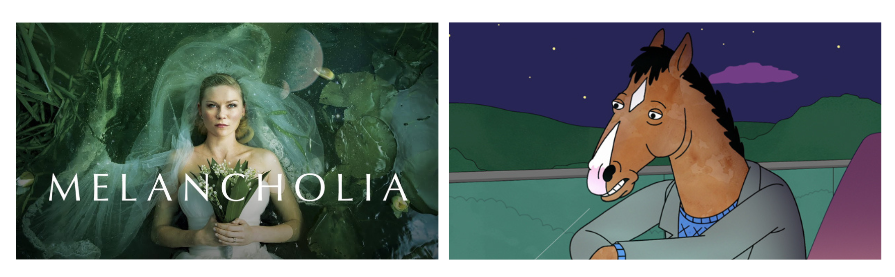 Depression reaches operatic beauty in Melancholia (2011). Lars von Trier opens with a slow-motion dream sequence of a planet on a collision course with Earth, scored to Wagner. Kirsten Dunst’s Justine drifts through her own wedding like a ghost, watching as joy slides off her like water off marble. The film is divided into two halves: one focused on her collapse, the other on her sister’s desperate attempts to keep life moving as the end of the world approaches. It’s as if depression itself is a celestial body, pulling everything toward it. Dunst won Best Actress at Cannes for embodying a kind of despair that is beautiful only because it’s honest. Bojack Horseman on Netflix takes that same unflinching gaze to depression, stretching it over six seasons. Yes, he’s a cartoon horse. Yes, he drinks too much, sabotages relationships, and talks in deadpan sarcasm. And yes, at some point, you will realize you’ve stopped laughing and started recognizing yourself.